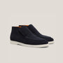 A refined evolution of our modern classic. The Andora in black box calf leather reinterprets our signature slip-on silhouette with a sleeker, more formal edge. Crafted from high-shine box calf, this version brings a sophisticated polish to the minimalist Andora design—ideal for smart casual to business casual settings.